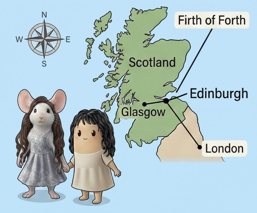Edinburgh liegt im Südosten Schottlands und ist die Hauptstadt des Landes. Die Stadt befindet sich an der Südküste des Firth of Forth, einem breiten Meeresarm der Nordsee. Diese Lage prägt sowohl die geografische Struktur der Region als auch ihre historische und wirtschaftliche Entwicklung. Etwa siebzig Kilometer westlich liegt Glasgow, die größte Stadt Schottlands, während London rund sechshundertfünfzig Kilometer südlich liegt. Trotz dieser Entfernungen wirkt Edinburgh keineswegs abgelegen – vielmehr liegt die Stadt an einem Ort, der seit Jahrhunderten Verbindungen schafft: zwischen Küste und Binnenland, zwischen Handel und Politik, zwischen Vergangenheit und Gegenwart.